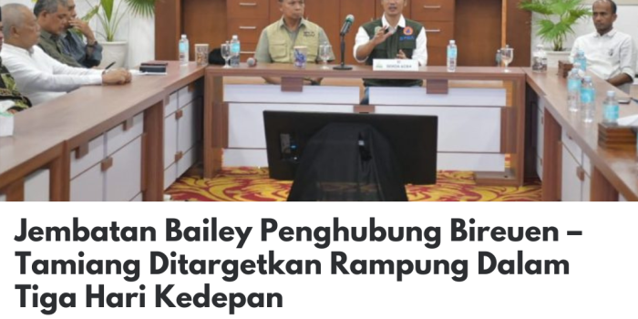 Jembatan Bailey Penghubung Bireuen – Tamiang Ditargetkan Rampung Dalam Tiga Hari Kedepan