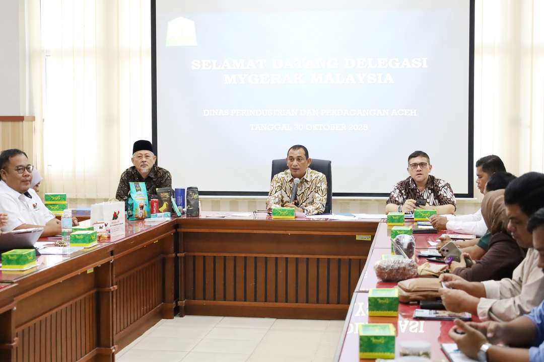 Hal tersebut disampaikan oleh Kepala Dinas Perindustrian dan Perdagangan Aceh T Adi Darma, usai menerima kunjungan Presiden Dewan Mygerak Eksport Malaysia, di aula Disperindag, Kamis 30 Oktober 2025.