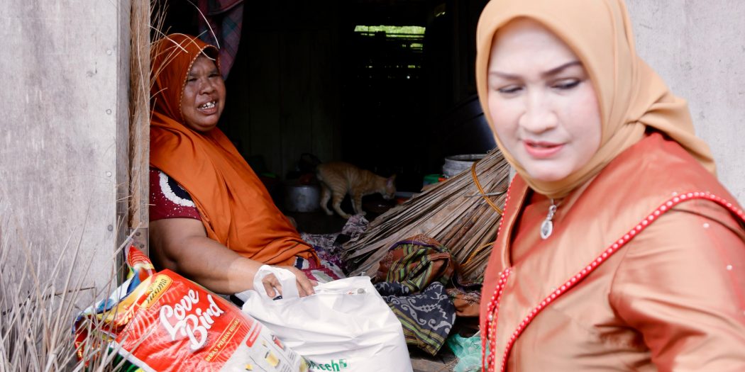 Ketua TP-PKK Aceh, Ny. Marlina Muzakir, saat mendatangi rumah Nur Laila (52), seorang janda di Gampong Seuneubok Tuha, Idi, Rabu, 19 Maret 2025.