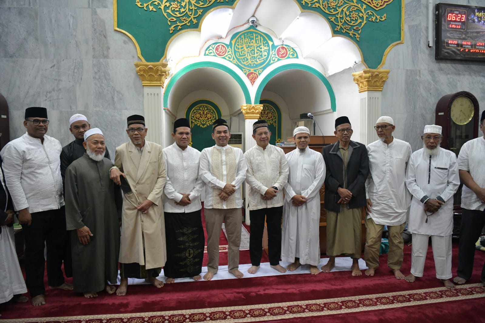Menteri Dalam Negeri RI, Tito Karnavian bersama Wakil Gubernur Aceh, Fadhlullah SE melaksanakan Sholat Subuh berjamaah di Masjid Baiturrahman, Lancang Garam, Kota Lhokseumawe, Sabtu, 21/02/2026.