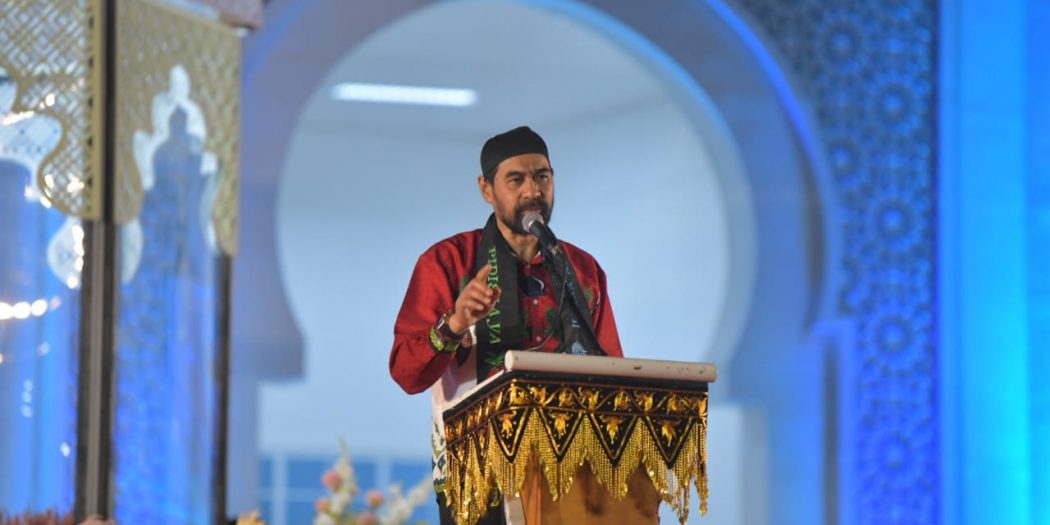 Gubernur Aceh, H. Muzakir Manaf, memberikan sambutan sekaligus membuka secara resmi Musabaqah Tilawatil Qur'an (MTQ) Tingkat Provinsi Aceh ke- XXXVII Tahun 2025 di Arena Utama Gedung MTQ Aceh, Meureudu, Kab. Pidie Jaya, Sabtu, 1 November 2025 malam.
