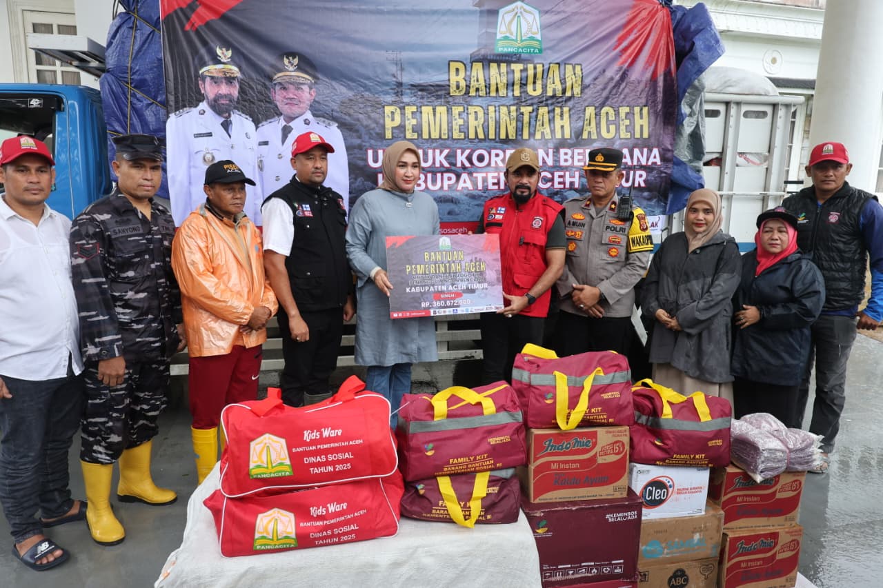 Aceh Timur, 26 November 2025 — Pemerintah Aceh Serahkan Bantuan ke Aceh Timur, Pemerintah Aceh memastikan kehadiran langsung di lapangan. Rombongan dipimpin oleh Istri Gubernur Aceh sekaligus Ketua TP PKK Aceh, Ny. Marlina Muzakir, didampingi Plt. Kepala Dinas Sosial Aceh, Chaidir, S.E., M.M., untuk menyalurkan bantuan logistik dan menguatkan masyarakat terdampak.