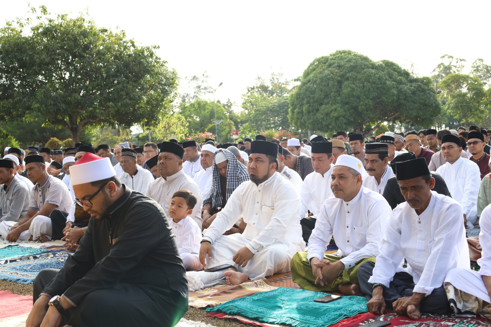 Pj Bupati Aceh Besar Muhammad Iswanto SSTP MM, bersama dengan jajaran ASN dan ribuan masyarakat menunaikan shalat Idul Adha 1444 Hijriah, di Lapangan depan Masjid Al Munawwarah, Kota Jantho, Aceh Besar, Kamis 29 Juni 2023 FOTO/ PROKOPIM PEMKAB ACEH BESAR