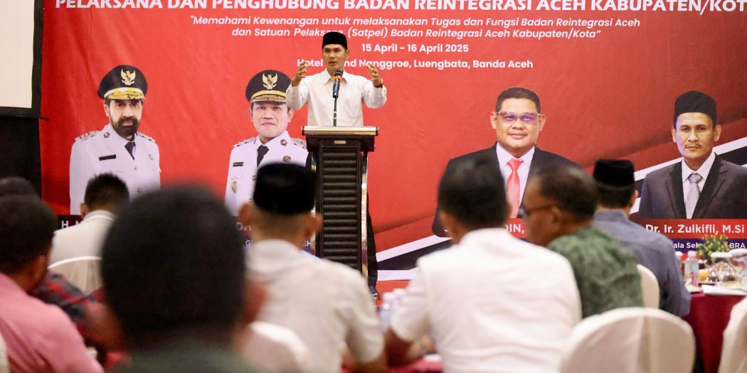 Hal tersebut disampaikan oleh Plt Sekretaris Daerah Aceh M Nasir, saat membacakan sambutan Gubernur Aceh, pada Rapat Koordinasi Badan Reintegrasi Aceh dengan Satuan Pelaksana dan Penghubung BRA Kabupaten/Kota, di Aula Grand Nanggroe, Selasa (15 April 2025) malam.