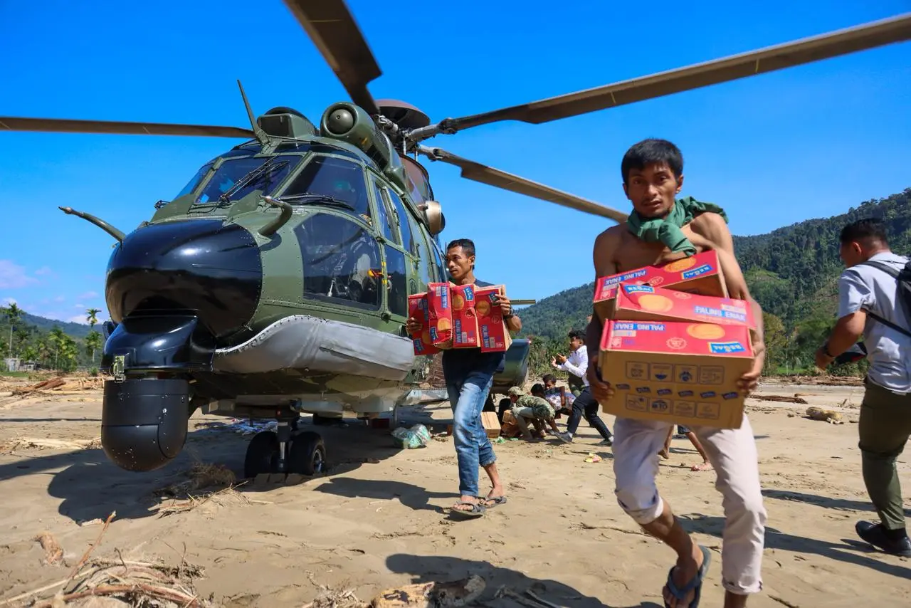 “Alhamdulillah, hari ini kami berhasil menembus perjalanan ke pedalaman Aceh Timur untuk mengantar bantuan ke Lokop. Kami menumpang Hely Caracal milik TNI AU yang dipimpin Mayor Pnb Yusman bersama Kapten Pnb Natan, Lettu Tek Nasrudin, Sertu Manik, Serda Suryo, Praka Ilham, dan Sertu Fachry.l,” ujar Marlina.