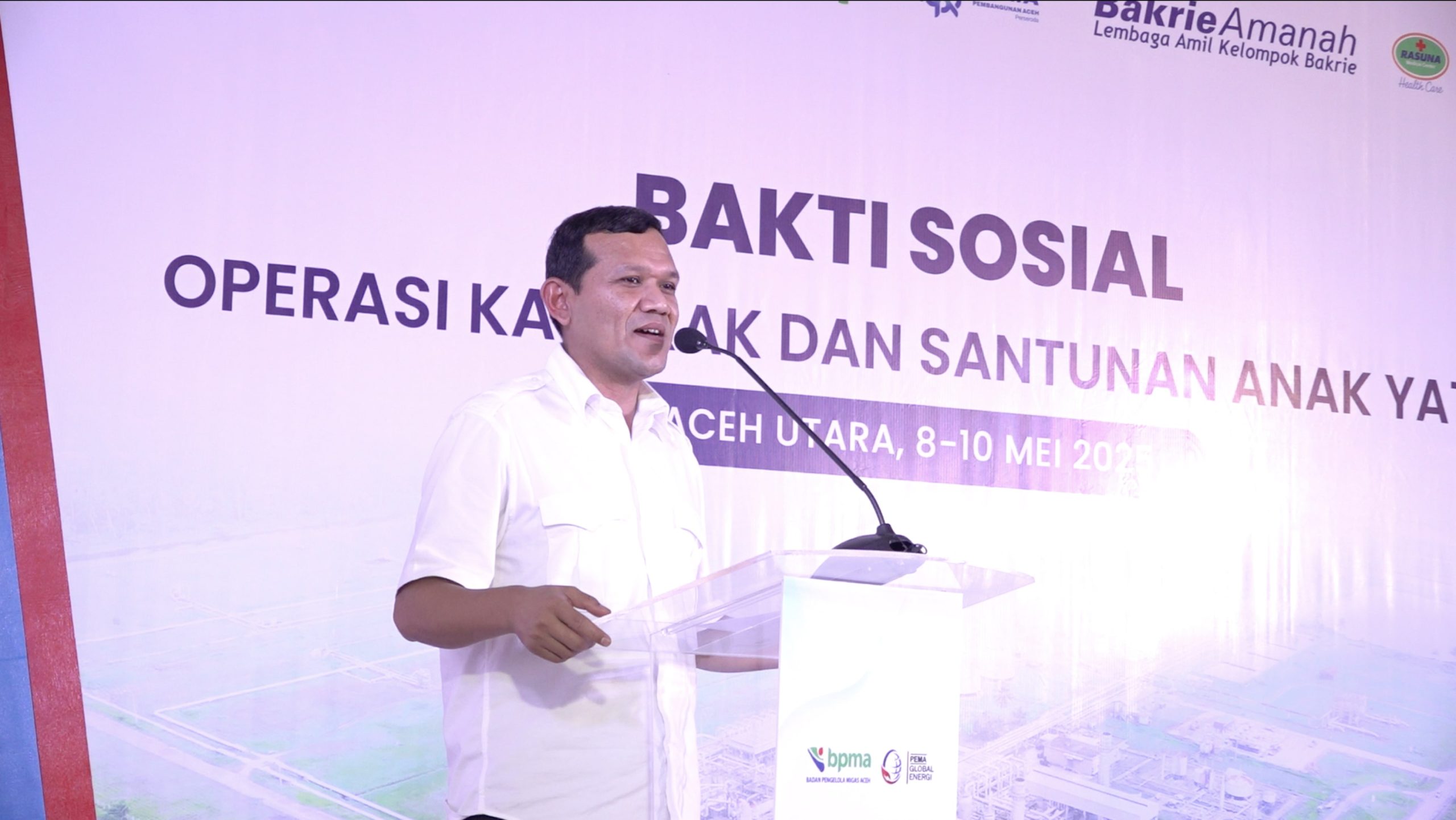 Aceh Utara, Beaktual.com – Wakil Gubernur Aceh, H. Fadhlullah, membuka kegiatan Bakti Sosial Operasi Katarak di Kabupaten Aceh Utara, Kamis 8 Mei 2025. Kegiatan ini terlaksana atas kerja sama PT Pema Global Energi (PGE) dan Lembaga Amil Zakat Kelompok Bakrie – Bakrie Amanah. Selain operasi katarak, kegiatan sosial ini juga meliputi pemberian santunan bagi anak yatim di wilayah sekitar.