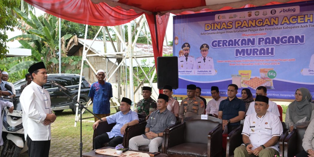 Aceh Timur, Beaktual.com – Wakil Gubernur Aceh, H. Fadhlullah, SE, membuka Gerakan Pangan Murah yang digelar oleh Dinas Pangan Aceh bekerja sama dengan Bulog, di Halaman Masjid Manzilul Minan, Gampong Seuneubok Baroh, Kecamatan Aceh Timur, Jumat, 14 Maret 2025. Kegiatan ini bertujuan untuk memberikan akses pangan dengan harga terjangkau kepada masyarakat menjelang Hari Raya Idul Fitri.