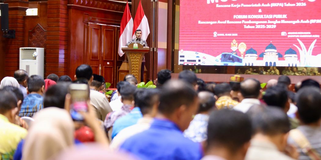 Banda Aceh, Beaktual.com – Wakil Gubernur Aceh, Fadhlullah, membuka musyawarah perencanaan pembangunan (Musrenbang) Rencana Kerja Pemerintah Aceh (RKPA) Tahun 2026 dan Forum Konsultasi Publik RPJMA 2025- 2029, di Anjong Mon Mata Komplek Meuligoe Gubernur Aceh, Kamis, 15 Mei 2025.