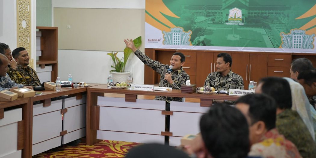 Wakil Gubernur Aceh, Fadhlullah, SE, didampingi Asisten Perekonomian dan Pembangunan Sekda Aceh, Dr. Ir. Zulkifli, M.Si, menggelar Rapat Lintas SKPA/Biro dalam Rangka Percepatan Pembentukan Koperasi Desa Merah Putih di Ruang Rapat Potensi Daerah Setda Aceh, Banda Aceh, Kamis, 15 Mei 2025